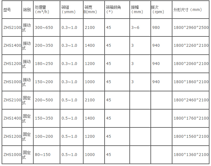 ZHS振动弧形筛和固定型弧形筛,是细粒级物料分级设备。主要结构由弧形筛框、不锈钢条缝筛面、块编心轴激振器,及机架、接水槽组成。它具有结构简单、安装方便等优点。该机对细粒级矿物筛分适应性强,浓度及给矿量在较大范围内波动时对筛子工作性能影响不大,极易透筛等特点。