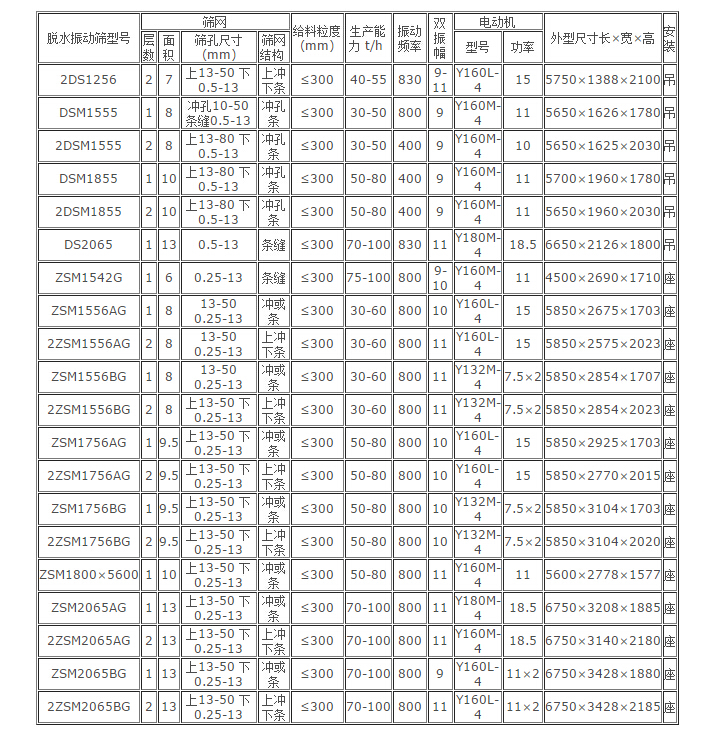 全系列共有十六种规格,可供选 煤、选矿、电力、制糖、制盐等工业部门,对中细粒级物料进行干湿式分级、脱水、脱介和脱泥。筛机处理能力大,筛分效率高。