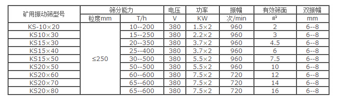 7.KS型系列矿用振动筛,计有11个定型规格并分别有敞开型和封闭型两种结构形式,适用不同作业环境需求,选用时请确定电压制式及有无防爆要求。