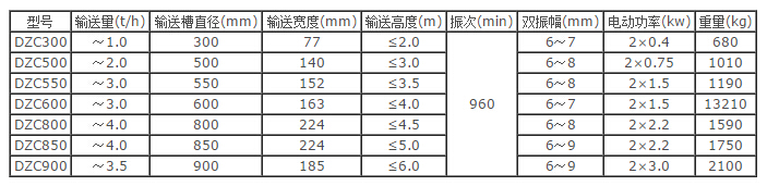 DZC系列振动垂直提升机技术参数表: