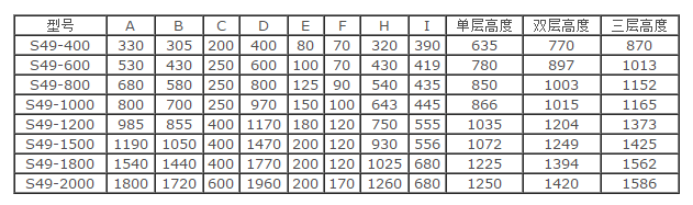 s49-系列旋振筛主要尺寸技术参数: