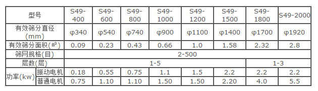 s49-系列旋振筛技术参数: